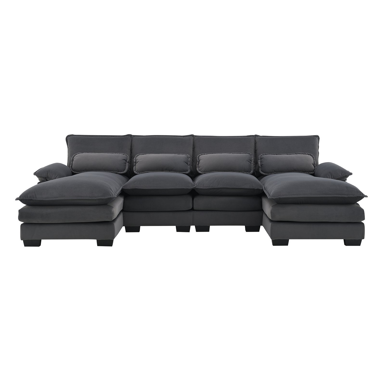 109.8*55.9″ Modern U-shaped Sectional Sofa with Waist Pillows,6-seat Upholstered Symmetrical Sofa Furniture,Sleeper Sofa Couch with Chaise Lounge for Living Room,Apartment,4 Color