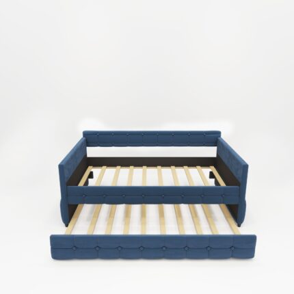 BLUE UPHOLSTERED TWIN SIZE DAYBED WITH TRUNDLE, VELVET FABRIC, NO BOX SPRING REQUIRED, COMFORTABLE AND SIMPLE DESIGN MODELS
