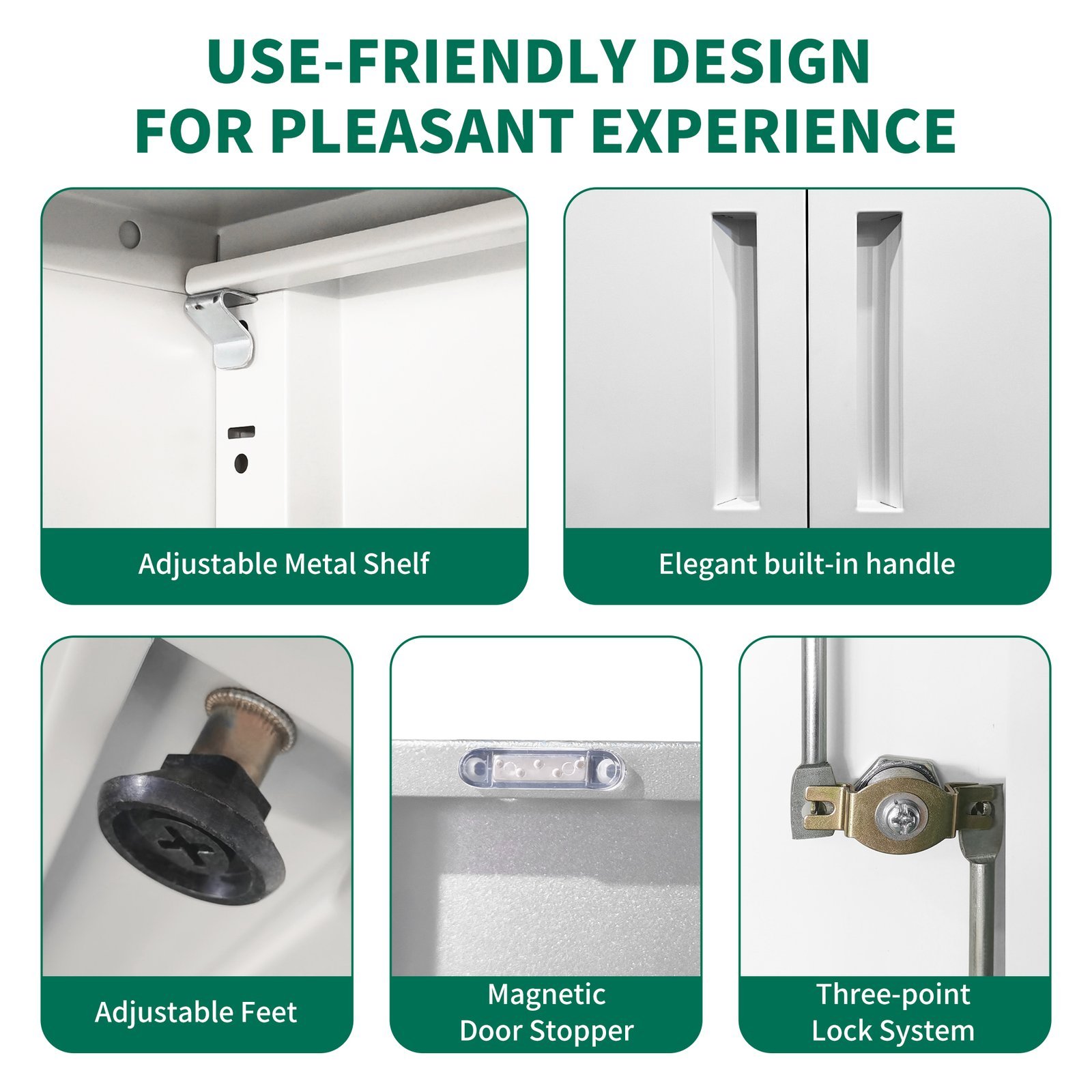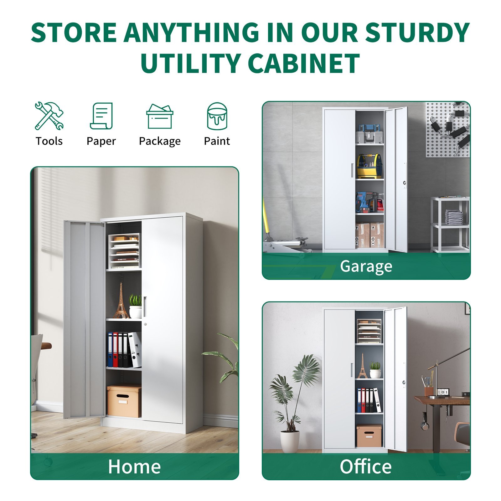 - Listing Description: Introducing this Heavy Metal Garage Storage Cabinet, crafted from 100% cold-rolled steel for unparalleled strength and durability. Our white metal cabinets with furniture locks provide a secure haven for your belongings, thanks to the newly developed wear-resistant coating.