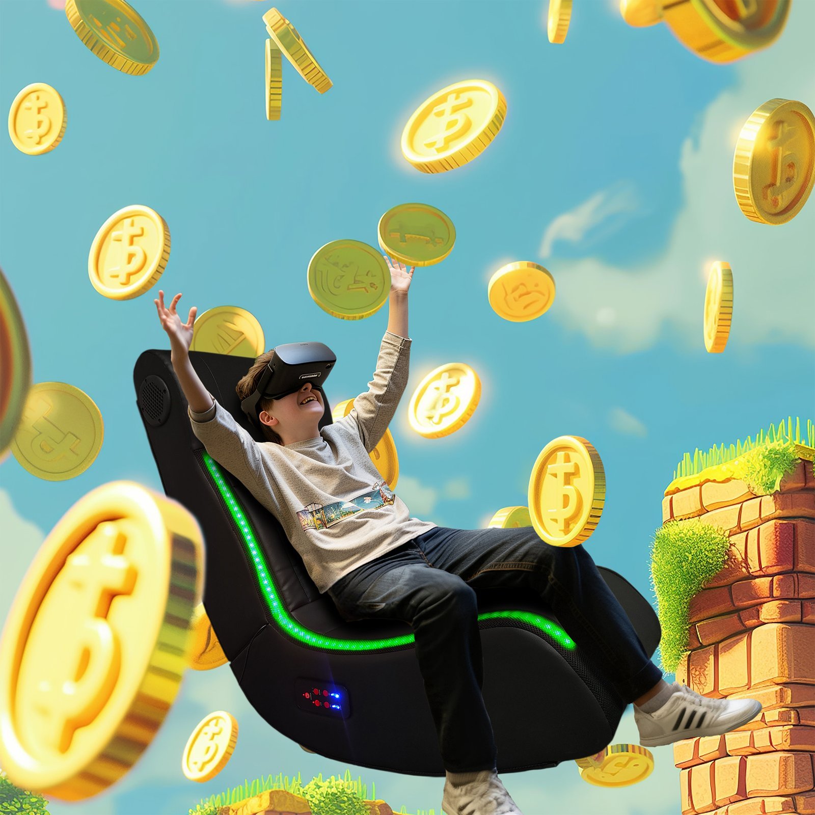 - Enjoy the multi-function gaming chair which brings you right into the colorful world surrounding with music while you are playing your mobile phone or other electronic devices.