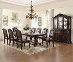 Elevate your dining experience with this exquisite and elegantly crafted set, designed to bring timeless sophistication to your home. The grand rectangular table features a rich, dark finish and intricately carved double pedestal base, making it the perfect centerpiece for formal gatherings and family dinners alike. The chairs boast beautifully detailed frames with luxurious upholstery, offering both comfort and refinement. Paired with an optional matching china cabinet, this set delivers classic European-inspired charm with ample storage for fine dinnerware and décor. Designed for those who appreciate traditional craftsmanship and impeccable style, this dining set transforms any space into a statement of elegance.