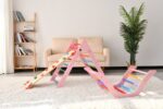Gardenia Pikler Triangle Set Montessori Toddler Climbing Toys Indoor, Foldable Climbing Toys for Toddlers 1-3 Inside, 2 Piece Baby Climbing Gym Indoor Playground, Pink