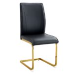 Luxury Simple Arch Chair – Set of 2 BLACK PU Material High Resilience Dining Chair with Arched Metal Gold Leg