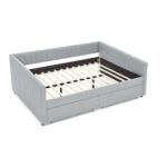 Be the first to review “Queen Size Daybed with Two Drawers Trundle Upholstered Sofa Bed, with Vertical Stripes Linen Fabric, Grey (86.5″x65″x30″)”