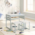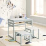 3-in-1 Kids Study Table & Chairs Set – Multi-Functional Activity Table with Detachable Blackboard Top for Drawing/Reading/Play, Durable Engineered Wood (MDF) Nursery Furniture for Toddlers