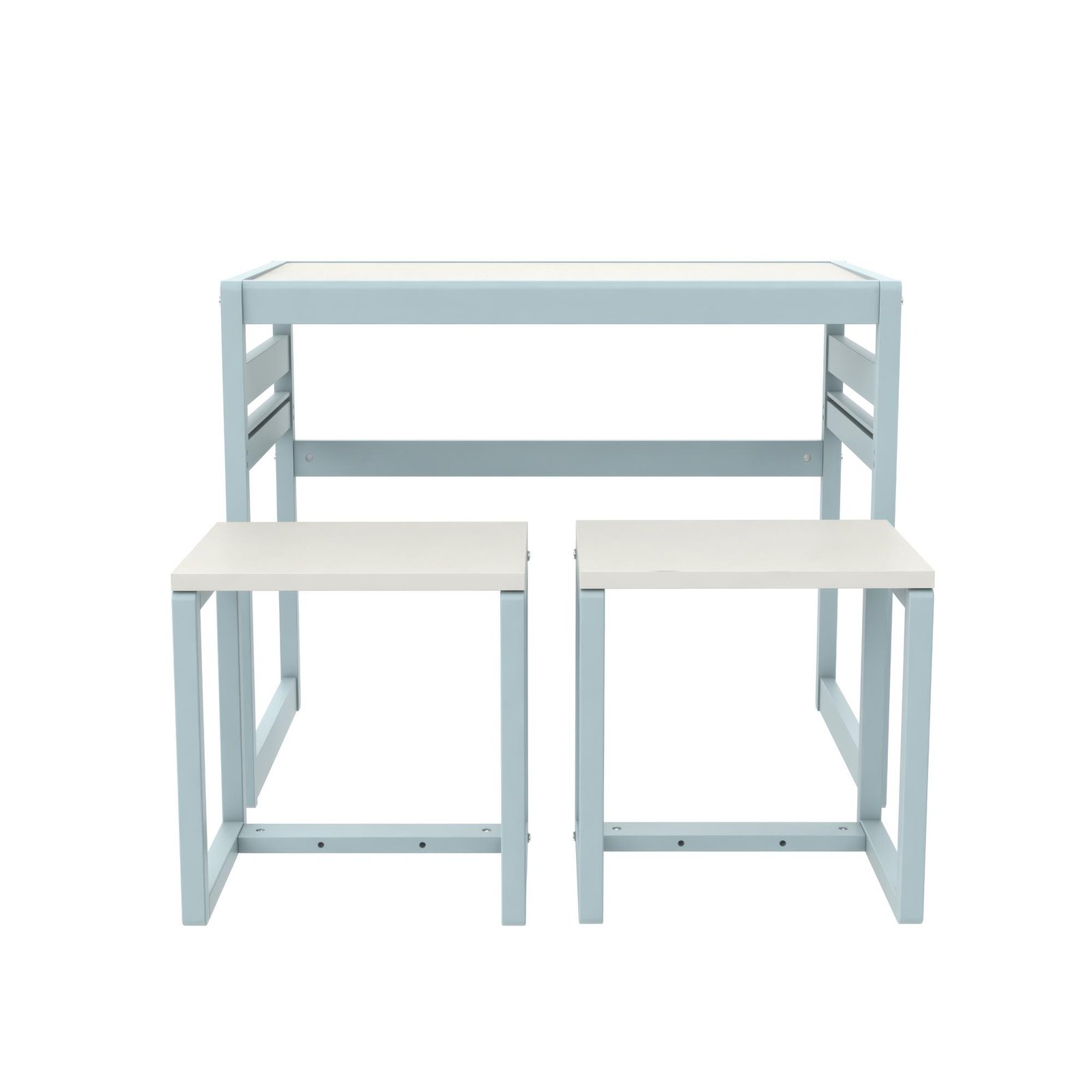 Chart a course for creativity with the Signy 3-Piece Kids’ Table & Chair Set! This charming activity set includes one table and two chairs, providing the perfect launchpad for your children to host an impromptu tea party, craft their next macaroni masterpiece, or embark on an imaginative learning adventure. Designed to fit into kids’ rooms, living rooms, nurseries, or playrooms, this Montessori-style set will bring joy to your little ones as they discover their special space to create, learn, and play. Parents will love how the Signy adapts to homeschool environments with raised borders to prevent crayons from rolling off, sturdy painted wood construction that withstands daily use, and stools that fit neatly under the table to save space. Perfect for toddlers and preschoolers, with adjustable chair and table heights that grow with your child, this lightweight set can be assembled and ready for play in 30 minutes.