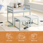 - VERSATILE KIDDY TABLE AND 2-CHAIR SET: Designed to fit into kids’ rooms, living rooms, kitchens, nurseries, or playrooms, our Montessori-style 3-piece kids’ activity table set encourages children to create, learn, and play in a space crafted just for them.