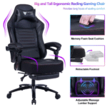 • The most comfortable chair you have ever sat in: our game chair is ergonomically designed, with a particularly high back, gently embracing the body, and supporting the neck and spine.